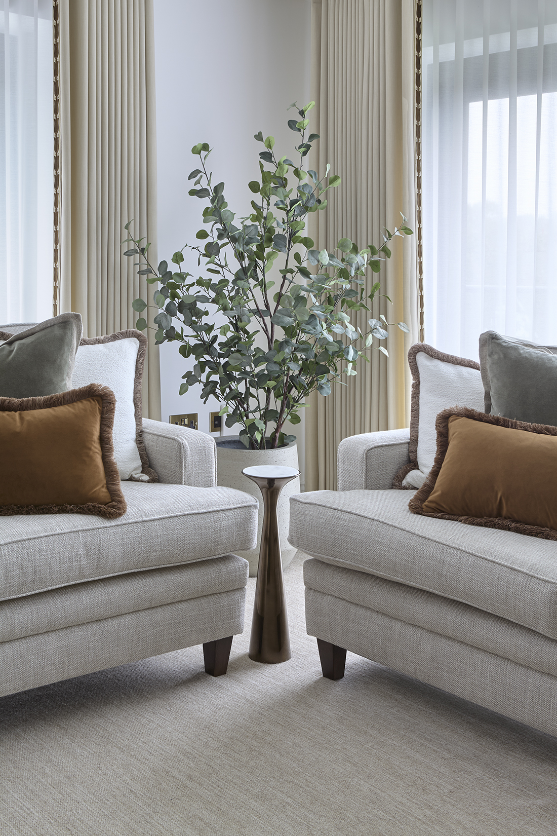 Located just outside London, this property reimagines a modern home with a warm, country-inspired twist. Blending sleek contemporary lines with rustic textures, soft palettes, and natural materials, the design brings a sense of homely charm without compromising on modern comfort. Every detail — from furniture selection to final styling — was thoughtfully curated to create a welcoming sanctuary that feels both timeless and tailored.